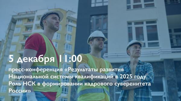5 декабря Национальное агентство развития квалификаций приглашает на пресс-конференцию «Результаты развития Национальной системы квалификаций в 2025 году. Роль НСК в формировании кадрового суверенитета России».