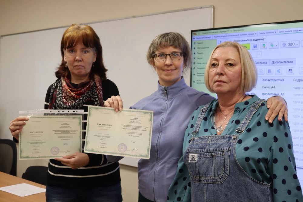 В самом конце уходящего года мы поздравили безработных женщин с завершением обучения по программе 1С:Предприятие!В группу вошли учащиеся из Петрозаводска и районов республики, поэтому использовался гибридный формат обучения. Наши учащиеся со всем справились, сложная 100 часовая программа освоена.